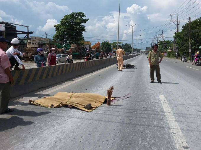 Va chạm vào dải phân cách làm cho ông Sáu cùng chiếc xe máy trượt dài hơn 30m trên quốc lộ 1K khiến ông chết tại chỗ.