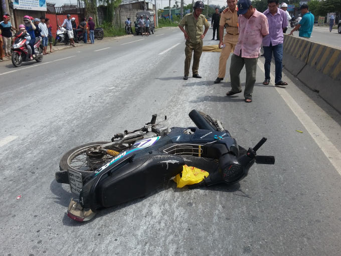 Va chạm làm ông Sáu cùng chiếc xe máy trượt dài hơn 30m trên đường làm ông ngã đập đầu xuống đường chết tại chỗ tại chỗ.