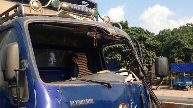 Người dân hai bên đường nghe tiếng kêu cứu đã chạy ra chặn xe đông lạnh lại và dùng xà ben để nạy cửa đưa tài xế ra bên ngoài đưa đi cấp cứu.