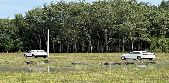 Đàn trâu nằm bơi trên diện tích khu dân cư đã phân lô bán.