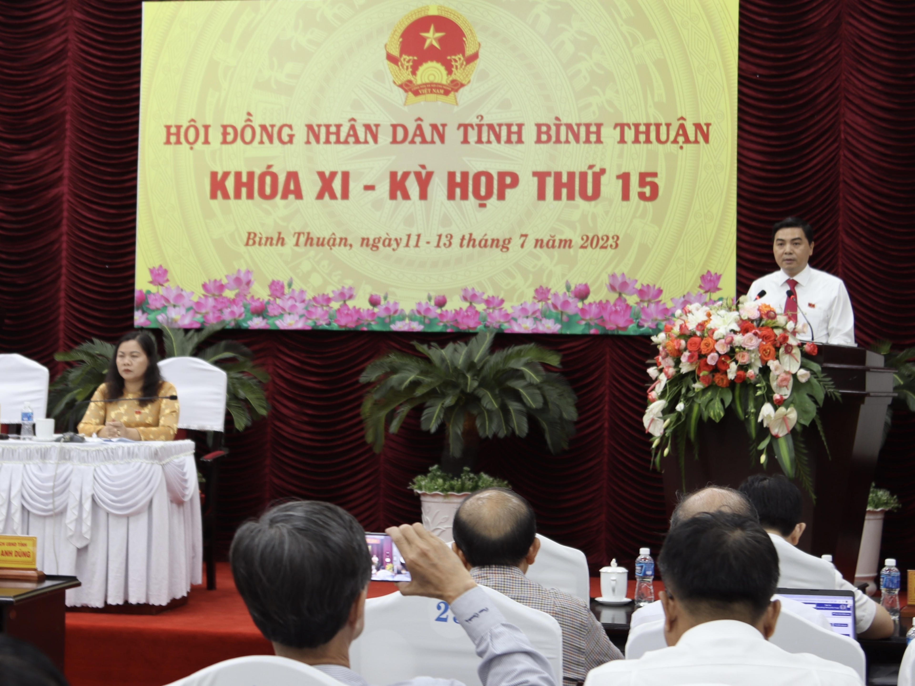 Chiều 11/7, sau 1 ngày làm việc và thảo luận kỳ họp thứ 15 HĐND, ông Nguyễn Hoài Anh - Chủ tịch HĐND tỉnh Bình Thuận thay mặt chủ tọa đã đánh giá kết luận buổi làm việc.
