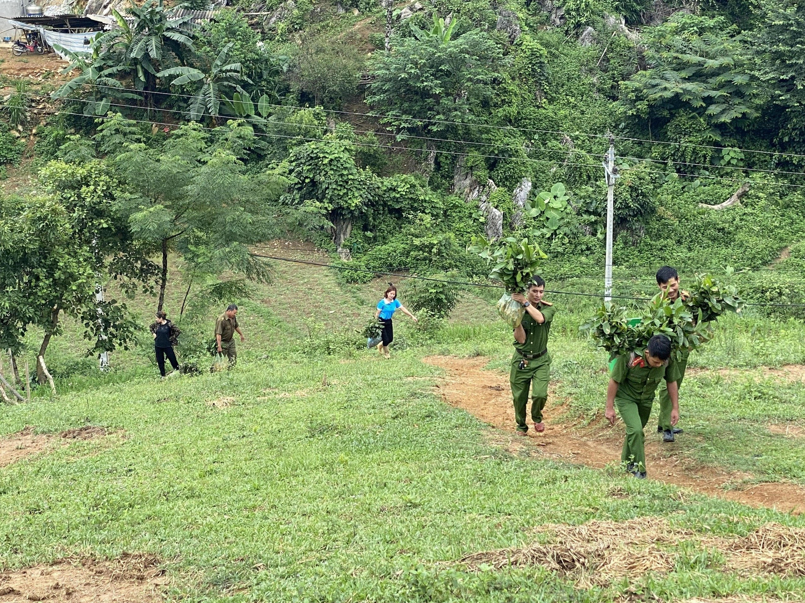 Lực lượng Công an xã Bản Phố giúp đỡ người dân thu hoạch nông sản.