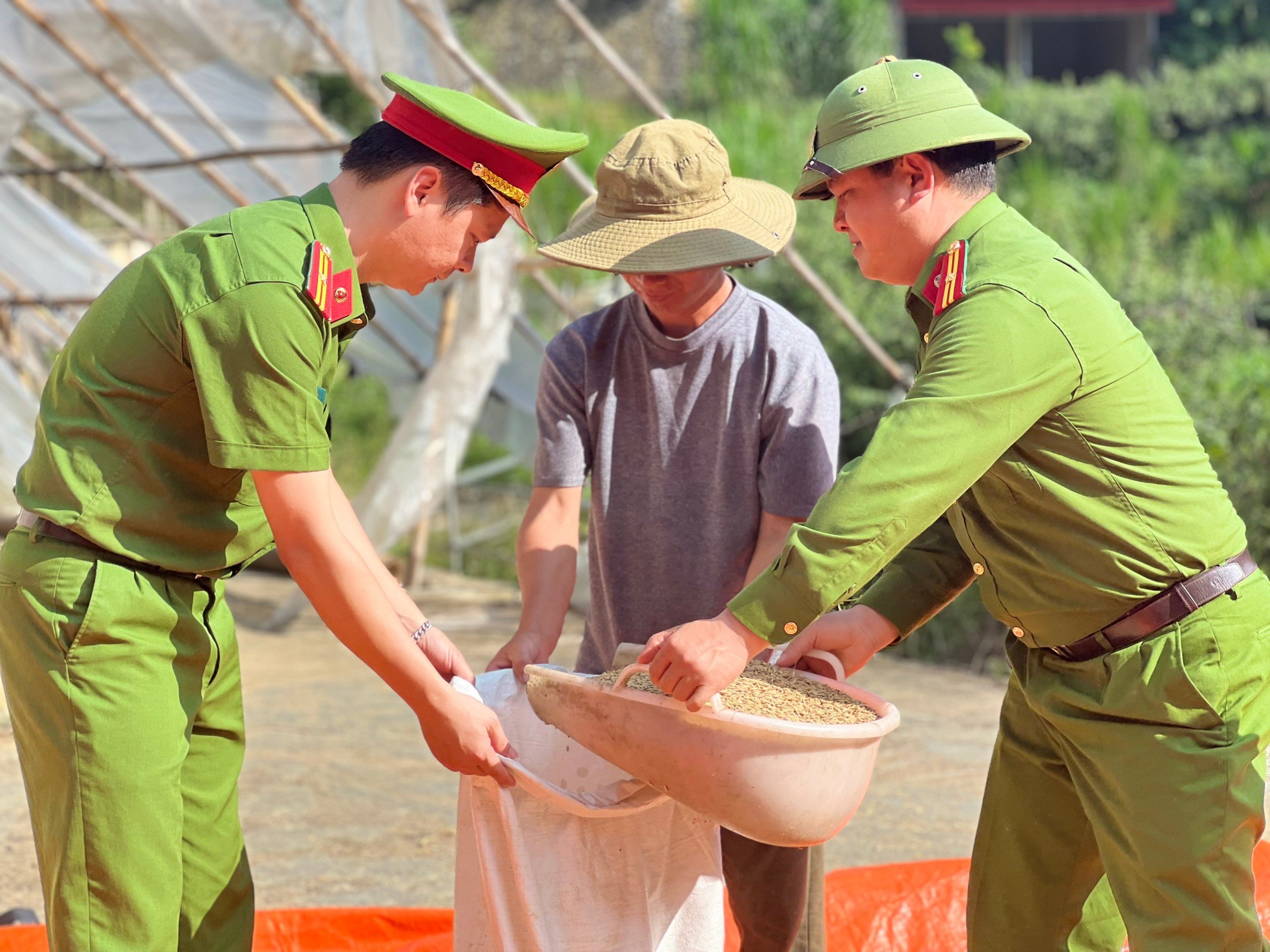 Công an xã Bản Phố - Gần dân, giúp đỡ nhân dân thu hoạch nông sản, phát triển kinh tế.
