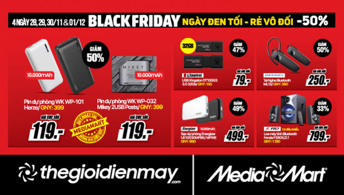 Dịp Black Friday, hệ thống siêu thị điện máy MediaMart mang đến chương trình “Ngày đen tối - Rẻ vô đối” với giá cực rẻ áp dụng duy nhất trong 4 ngày vàng từ 28/11-1/12/2019.