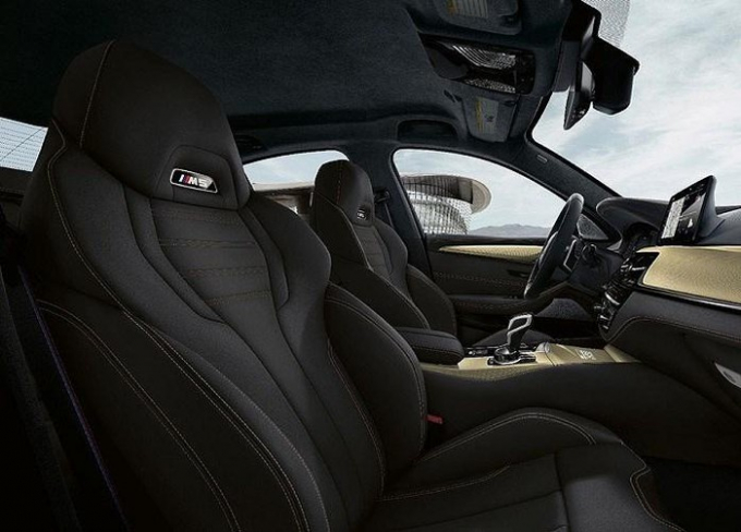 Nội thất xe cũng được làm đẹp bởi bộ ghế thể thao M bọc da đen Merino, trong khi cần số, cửa được ốp carbon nhôm oxit màu vàng kim loại.