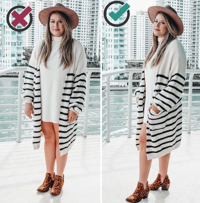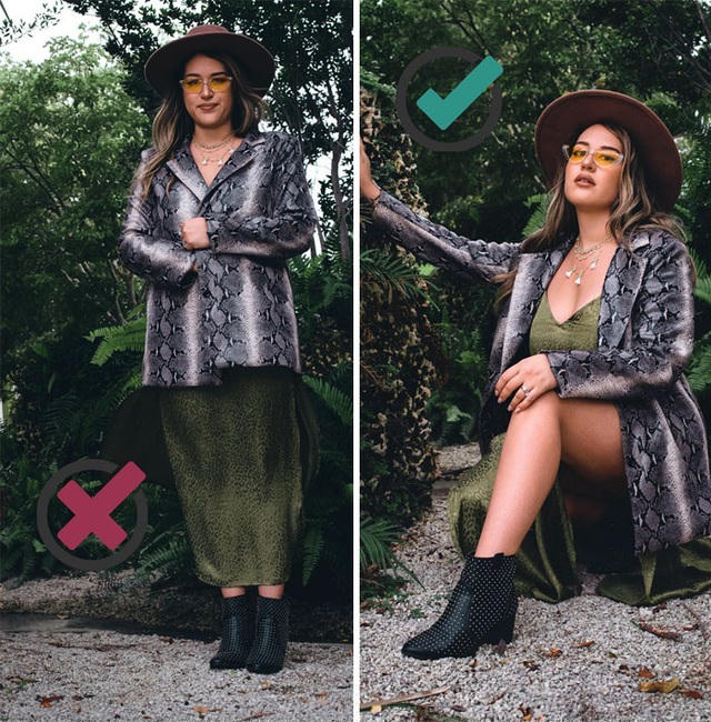 Những điều nên làm và không nên làm khi chụp ảnh được Bonnie chia sẻ trong những hình minh họa rất dễ hiểu, cho thấy sự khác biệt lớn đến từ những thay đổi nhỏ trong cách biểu đạt ngôn ngữ cơ thể, cách tương tác với trang phục, phụ kiện...