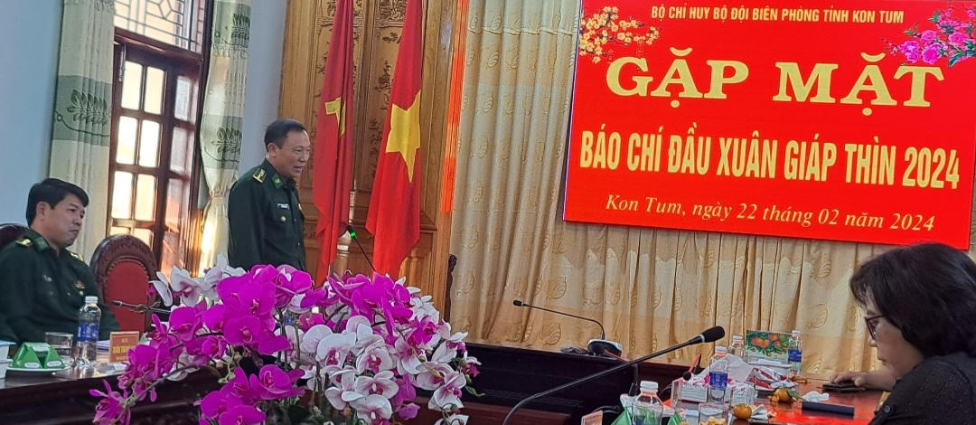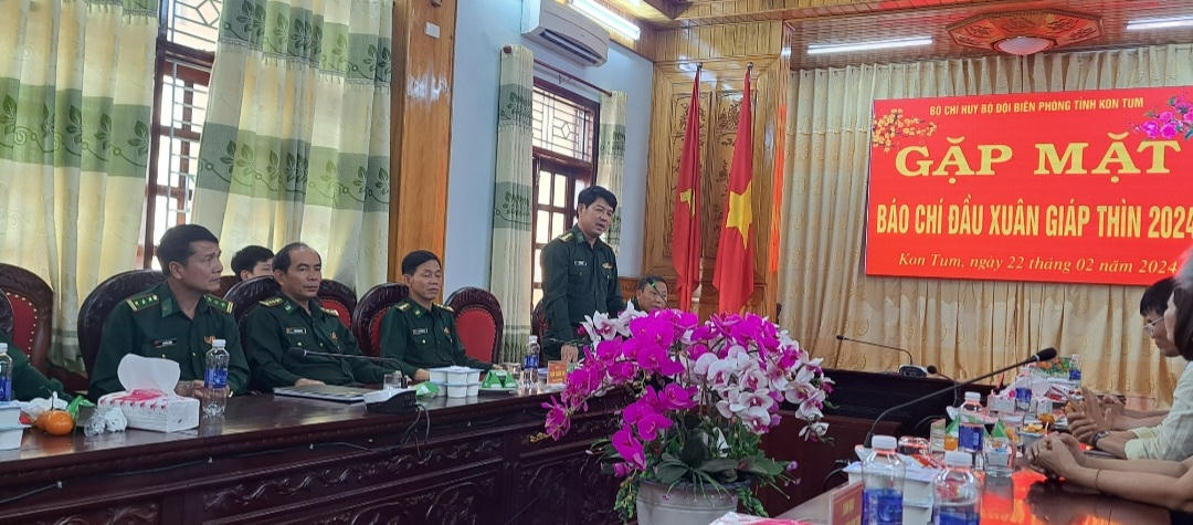 Phát biểu tại buổi gặp mặt, Đại tá Lê Quốc Việt, Chỉ huy Trưởng Bộ Chí huy Bộ đội Biên phòng tỉnh Kon Tum cảm ơn các phóng viên báo chí Trung ương và địa phương đã bám sát tình hình và đưa tin kịp thời về lực lượng Biên phòng tỉnh Kon Tum trong việc thực hiện nhiệm vụ bảo vệ chủ quyền an ninh biên giới quốc gia, đồng chí Lê Quốc Việt mong muốn các phóng viên tiếp tục phát huy phẩm chất của người báo chí cách mạng, luôn đồng hành với lực lượng Biên phòng tỉnh trong việc thực hiện nhiệm vụ.