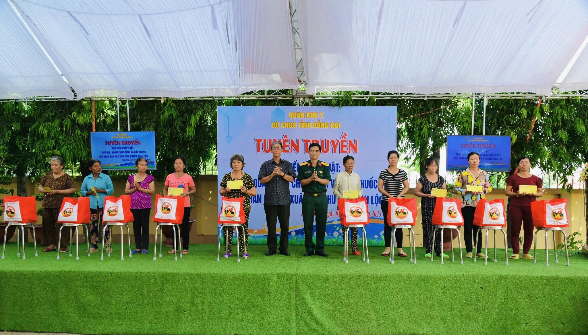 Ngày 7/12, Bộ CHQS tỉnh Đồng Nai trao tặng quà, khám bệnh cấp thuốc và tuyên truyền pháp luật cho 300 người dân xã Xuân Phú, huyện Xuân Lộc, tỉnh Đồng Nai.