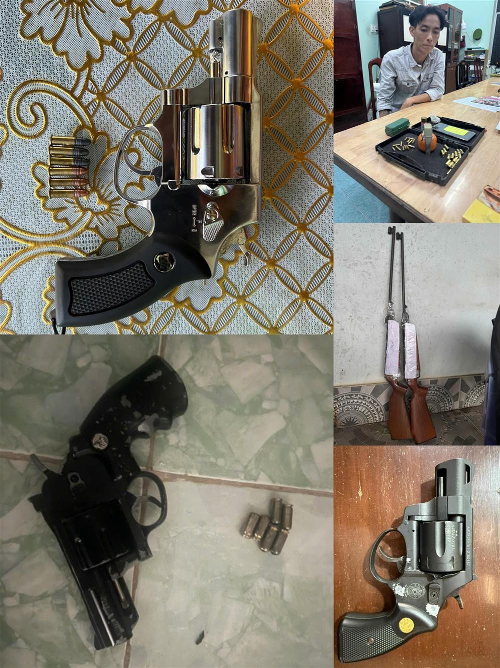 Kết quả khám xét đã thu giữ: 05 khẩu súng (02 khẩu súng dài, 03 khẩu súng ngắn), 01 vật nghi là lựu đạn, 43 viên đạn các loại (đã trưng cầu giám định số vũ khí trên); các giấy tờ, sổ sách liên quan đến hoạt động cho vay lãi nặng, tổ chức đánh bạc và đánh bạc; 01 túi nilon chứa tinh thể màu trắng nghi là ma tuý và các dụng cụ nghi để sử dụng trái phép chất ma tuý; 250 triệu đồng tiền mặt và các phương tiện, đồ vật, tài liệu khác có liên quan đến hành vi phạm tội của các đối tượng.