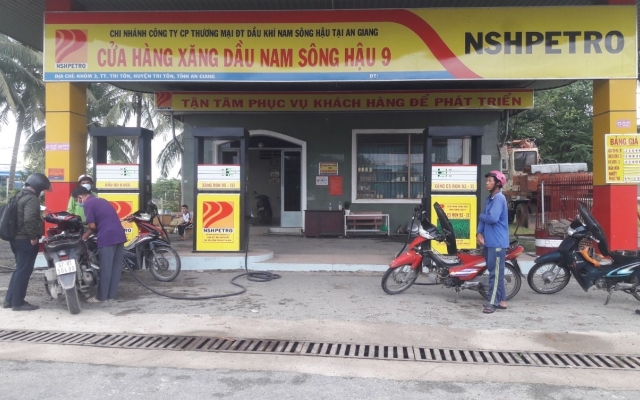 Trạm cấp phát xăng dầu ở phường Mỹ Thới, TP Long Xuyên (An Giang) đóng cửa ngừng hoạt động. Ảnh: Công Mạo/TTXVN