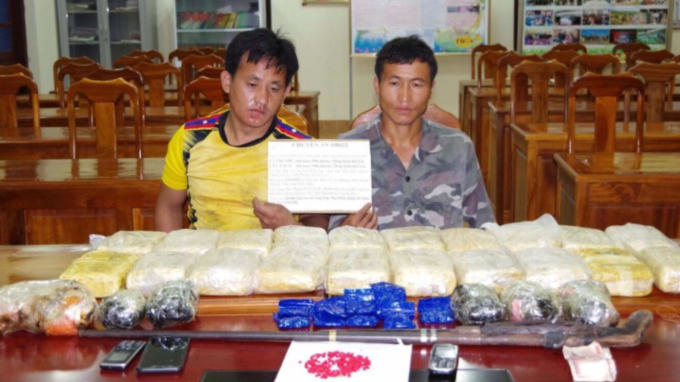 Hai đối tượng bị bắt giữ là Bun Son (tên gọi khác là Vừ Tủa, SN 1987), và Lếch Vang (SN 1990, cùng trú tại bản Chạ Lơn, huyện Phong Sa Lỳ, tỉnh Phong Sa Lỳ, nước Cộng hòa dân chủ Nhân dân Lào). Tang vật gồm 120.000 viên ma túy tổng hợp, 6kg thuốc phiện, 1 súng kíp, 3 điện thoại di động và chiếc 1 cân móc mini cầm tay loại 5kg.