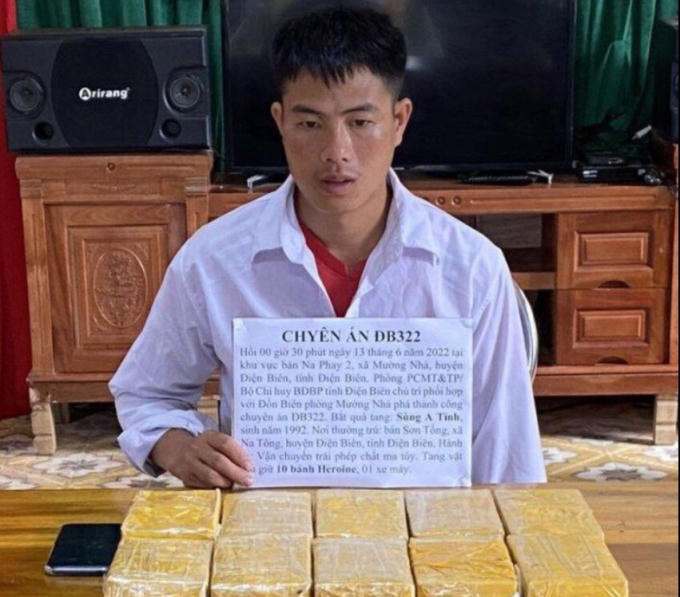 Khoảng 23h cùng ngày, tại bản Sơn Tống, xã Na Tông, huyện Điện Biên, tỉnh Điện Biên, lực lượng đánh án đấu tranh thành công Chuyên án mang bí số ĐB322, bắt giữ Sùng A Tỉnh (SN 1992, trú tại bản Sơn Tống, xã Na Tông, huyện Điện Biên, tỉnh Điện Biên). Tang vật thu giữ gồm 10 bánh heroin, 1 xe máy và 1 điện thoại di động.