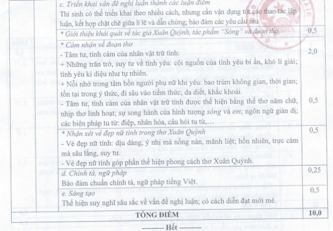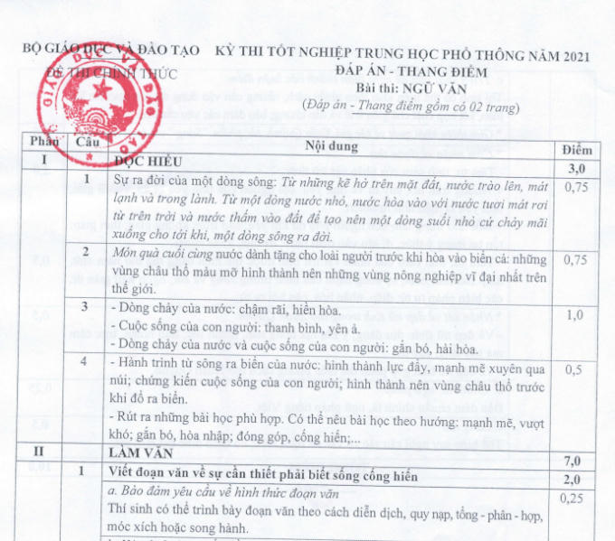 Bộ GD&ĐT vừa công bố đáp án và thang điểm bài thi môn Ngữ văn trong kỳ thi tốt nghiệp THPT đợt 1 năm 2021.