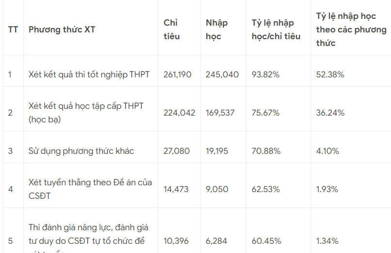 Tuyển sinh Đại học năm 2022, có đến gần 20 phương thức xét tuyển được các cơ sở giáo dục Đại học áp dụng. Tuy nhiên, kết quả nhập học của thí sinh chủ yếu ở phương thức xét học bạ và Xét kết quả học tập cấp THPT (học bạ).