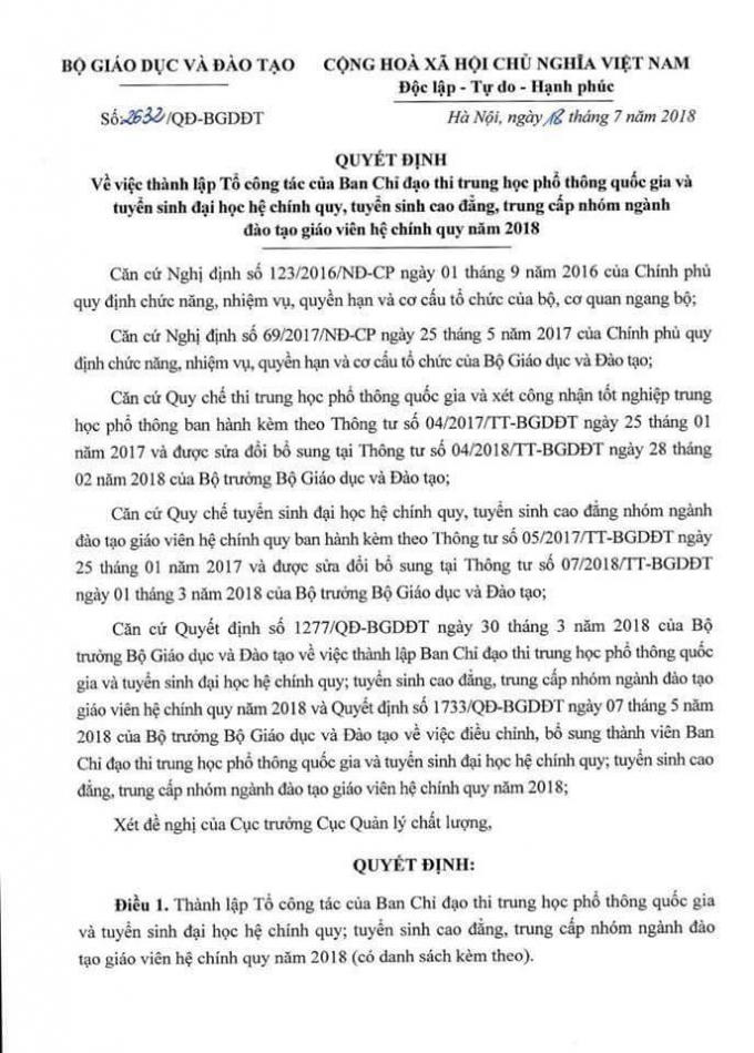 Theo đó, Tổ công tác có nhiệm vụ giúp bộ trưởng chỉ đạo việc kiểm tra, xác minh dấu hiệu bất thường về kết quả thi tại Hội đồng thi Sở GD&ĐT tỉnh Lạng Sơn trong kỳ thi THPT quốc gia 2018.