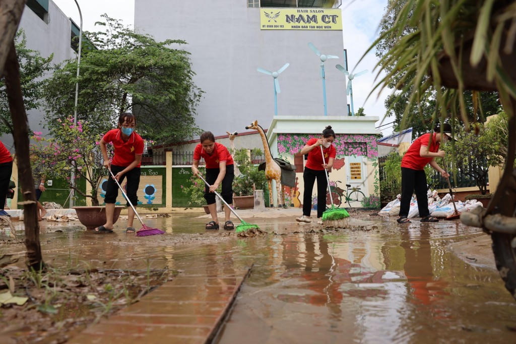 Ngoài ra, khắc phục thiệt hại do mưa lũ gây ra; Dọn dẹp trường/lớp học ngay sau khi mưa lũ kết thúc bảo đảm vệ sinh và phòng ngừa dịch bệnh.