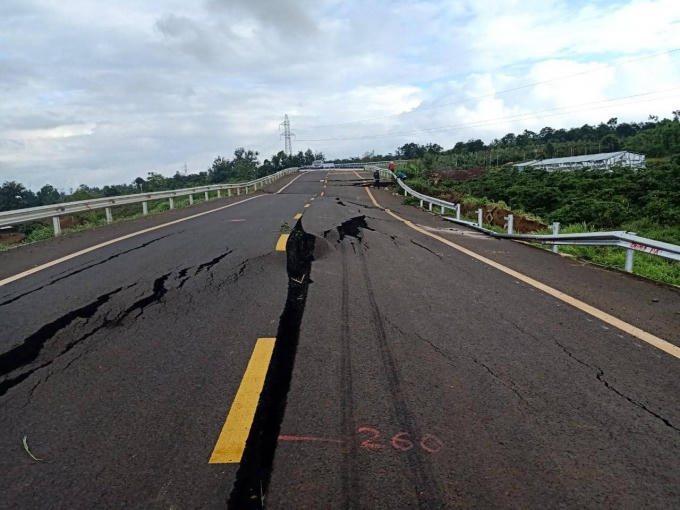 Theo đó, đầu tháng 9 vừa qua tại tuyến đường trên đã xảy ra hiện tượng sụt lún nghiêm trọng, chiều dài 150 m, vết nứt rộng nhất khoảng 20cm, sự cố làm hư hỏng hạng mục nền, mặt đường, may mắn không gây thương vong về người.