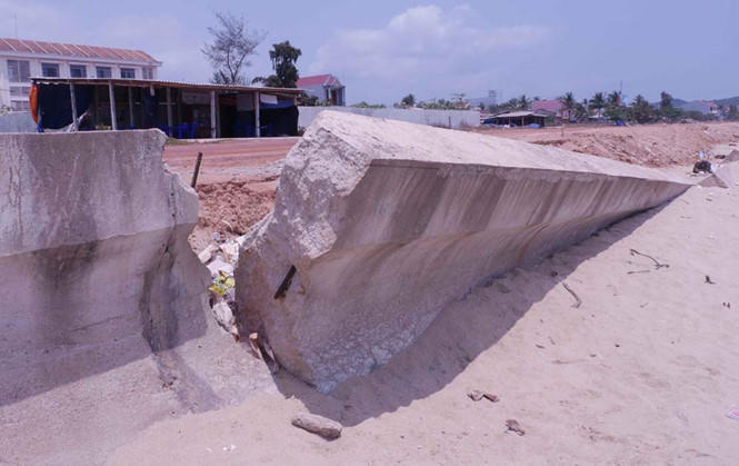 Người dân các xã Tam Quan Bắc, Tam Quan Nam (H.Hoài Nhơn, Bình Định) rất bức xúc vì kè chống xói lở bờ biển Tam Quan vừa đưa vào sử dụng đã bị hư hỏng, xuống cấp.
