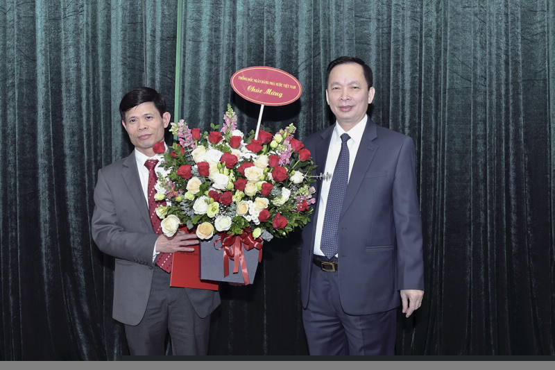 Phó Thống đốc Đào Minh Tú trao quyết định và chúc mừng ông Đặng Văn Tới.