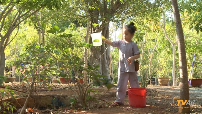 Ngay sau khi hoàn thành nhiệm vụ “tọa thiền” sư thầy phân công nhiệm vụ tiếp theo cho các cặp bố con: Nhiệm vụ làm việc trong yên lặng.