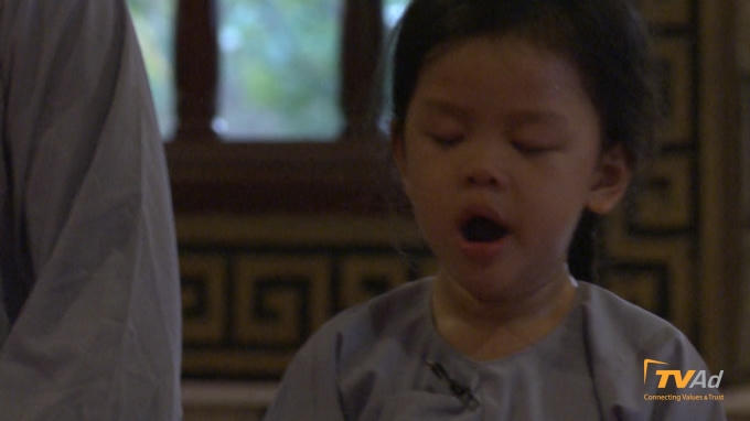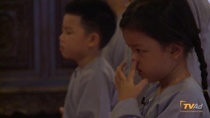 Thử thách đầu tiên của 4 cặp bố con là ngồi tọa thiền trong thời gian 1 nén hương.