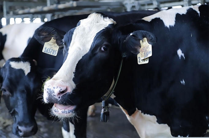 Mỗi cô bò sữa Vinamilk đều được được đeo chip điện tử để theo dõi tình trạng sức khỏe, vận động… thông qua phần mềm chuyên dụng