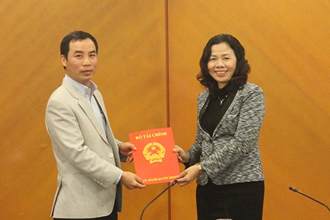 | Thứ trưởng Vũ Thị Mai (bên phải) trao quyết định bổ nhiệm ông Ngô Chí Tùng giữ chức phó chánh văn phòng Bộ Tài chính. |