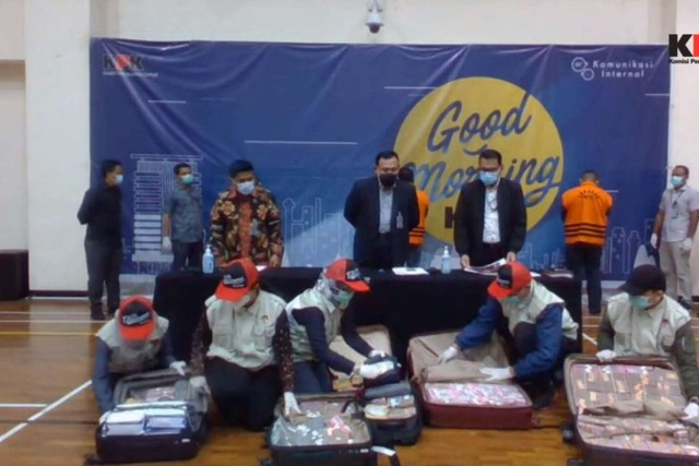 Cơ quan chức năng Indonesia thu giữ 7 va li và ba lô tiền mặt trong nghi án tham nhũng liên quan đến chương trình cứu trợ Covid-19. (Ảnh: KPK)