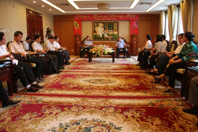 Các đồng chí Nguyễn Thanh Nghị, Bí thư tỉnh ủy; Phạm Vũ Hồng, Phó bí thư tỉnh ủy, Chủ tịch UBND tỉnh; Đặng Tuyết Em, Phó bí thư thường trực tỉnh ủy, Chủ tịch HĐND tỉnh; Nguyễn Hoàng Thắng, Ủy viên Ban Thường vụ Tỉnh ủy, Phó Chủ tịch HĐND tỉnh; Lê Thị Vệ, Ủy viên Ban Thường vụ Tỉnh ủy, Chủ tịch UBMTTQ tỉnh... cùng tiếp và làm việc với Đoàn.