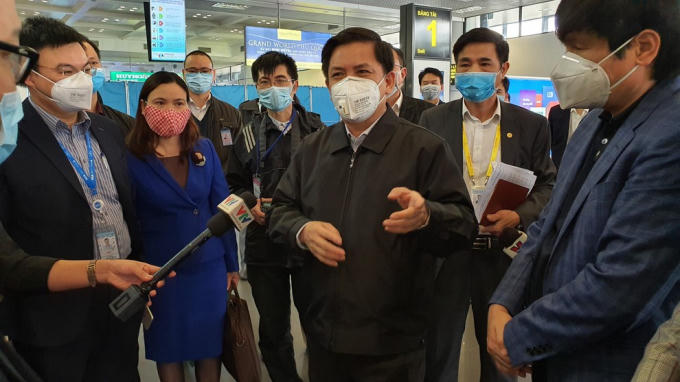 Bộ trưởng Nguyễn Văn Thể trực tiếp kiểm tra, chỉ đạo triển khai phòng dịch Covid-19 tại Cảng HKQT Nội Bài. (Ảnh: VOV)