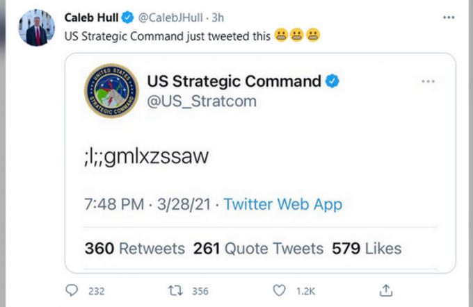 Bộ Tư lệnh Chiến lược Mỹ (STRATCOM) đã khiến người dùng Twitter xôn xao khi đăng tải những ký tự và con chữ khó hiểu.