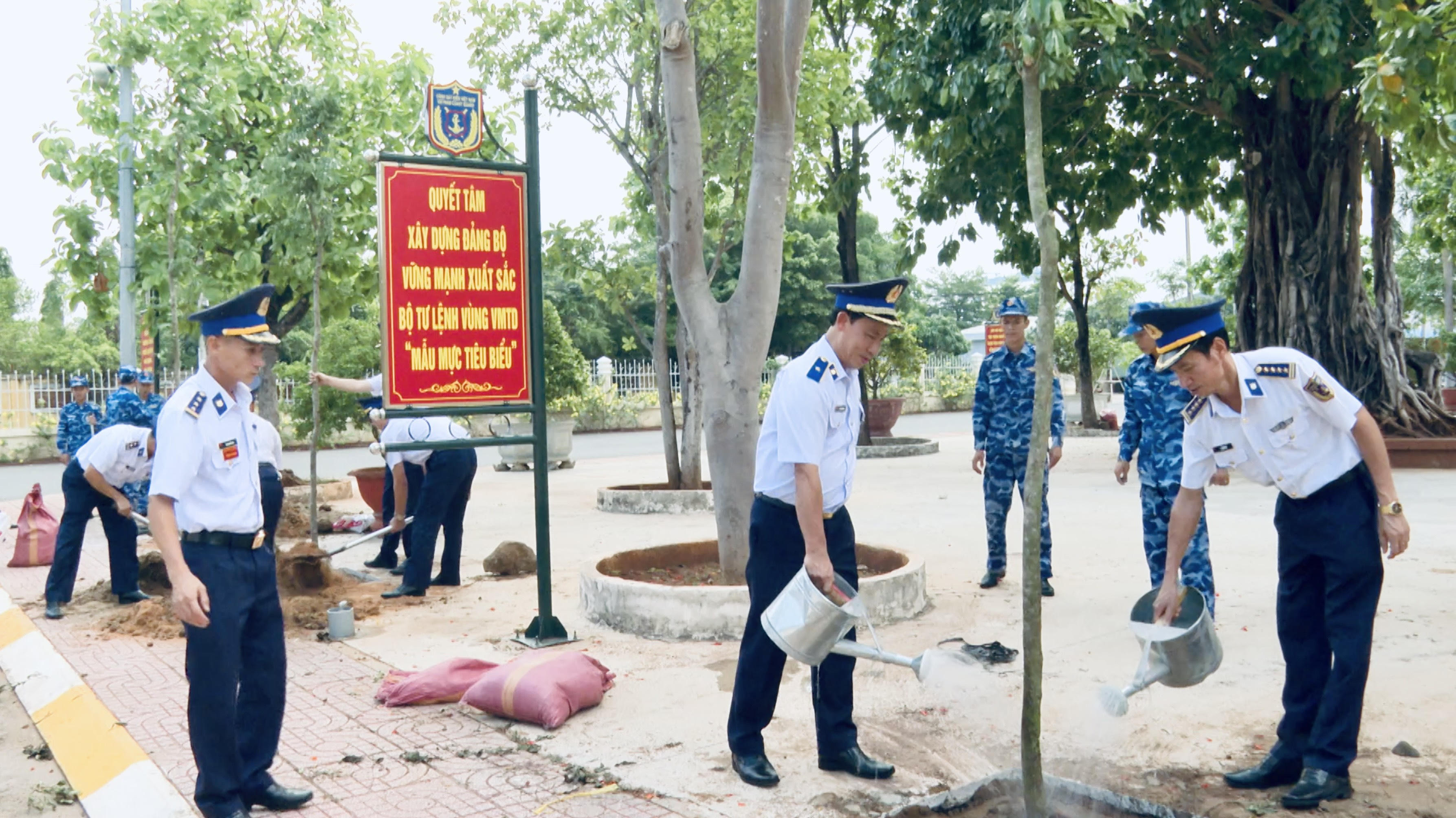 Sau Lễ phát động, cán bộ chiến sỹ toàn đơn vị đã tiến hành trồng được 250 cây xanh các loại tại khu vực sở chỉ huy Vùng, Hải đoàn 32, Hải đội 33.
