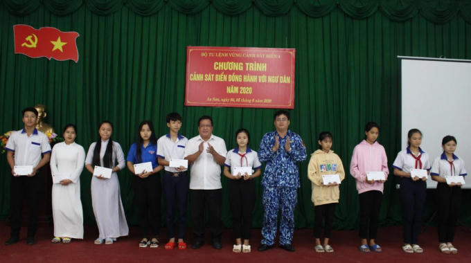 Tại đây, BTL Vùng đã trao tặng 10 suất quà, mỗi suất trị giá 500.000 đồng (gồm 10 kg gạo, 01 hộp khẩu trang y tế và 300.000 đồng) cho ngư dân nghèo, gia đình chính sách trên đảo; 10 suất quà trị giá 500.000 đồng/ 1 suất cho 10 cháu học sinh nghèo vượt khó; trao học bổng cho 03 cháu học sinh có hoàn cảnh khó khăn trị giá 1.500.000 đồng/ 1 cháu (đơn vị nhận đỡ đầu 03 cháu với mức 500.000 đồng/cháu/tháng); trao tặng 10 phiếu mổ mắt miễn phí trị giá 15.000.000/1 phiếu/1 ca mổ.