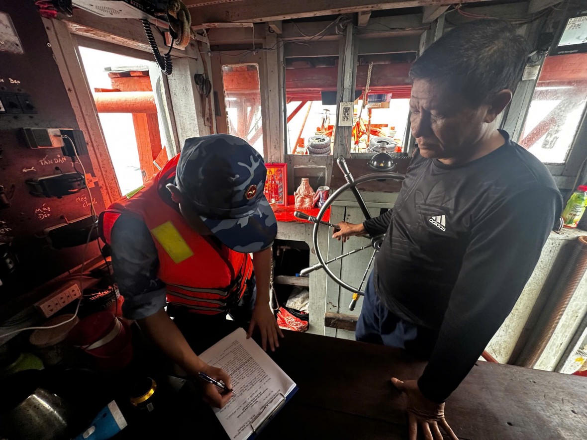 Tại thời điểm kiểm tra, trên tàu có 04 thuyền viên, do ông Nguyễn Văn Long (trú tại phường Vĩnh Thông, thành phố Rạch Giá, tỉnh Kiên Giang) làm thuyền trưởng. Ông Long khai nhận, trên tàu cá KG 93003 TS đang vận chuyển khoảng 60.000 lít dầu D.O không có giấy tờ chứng minh nguồn gốc hợp pháp của hàng hóa. Số dầu này nếu trót lọt sẽ đem bán cho các tàu cá khai thác thủy sản trên biển.