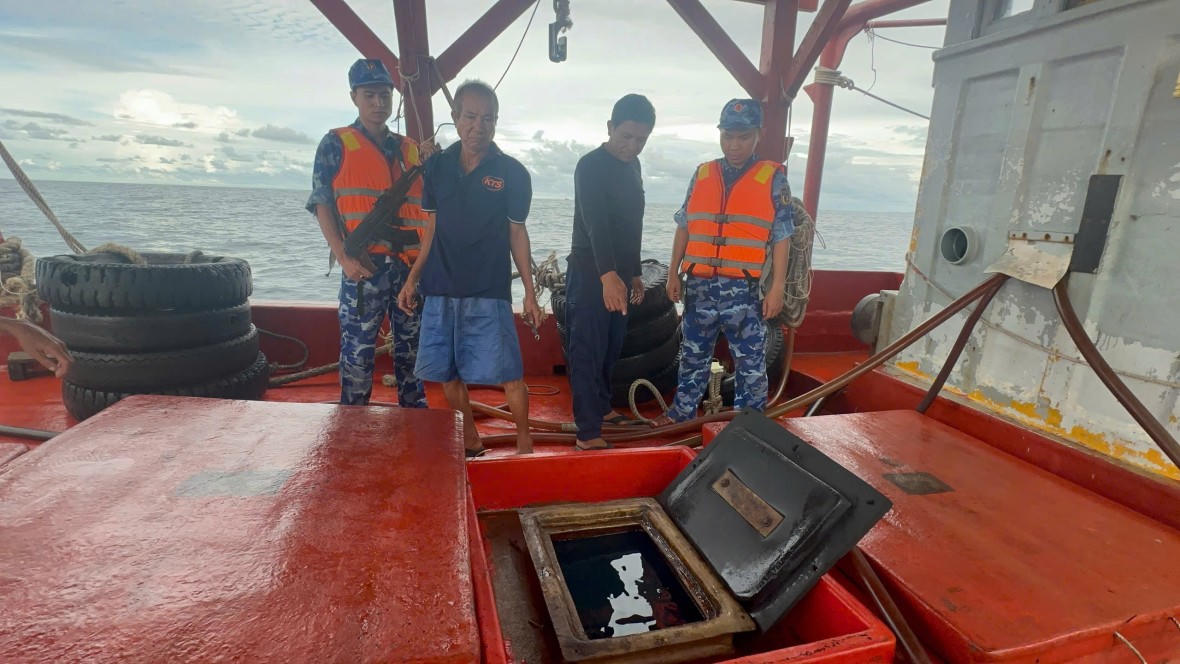 Bộ Tư lệnh Vùng Cảnh sát biển 4 kiểm tra tàu cá KG 93003 TS do ông Nguyễn Văn Long làm thuyền trưởng thì phát hiện đang vận chuyển khoảng 60.000 lít dầu D.O không có giấy tờ chứng minh nguồn gốc hợp pháp của hàng hóa. Số dầu này nếu trót lọt sẽ đem bán cho các tàu cá khai thác thủy sản trên biển.