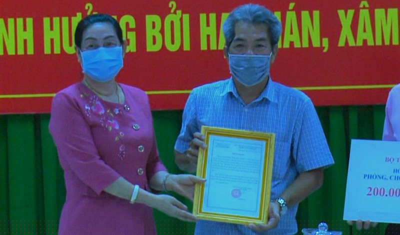 Sở Tư pháp tỉnh Kiên Giang thừa ủy quyền của Bộ Tư pháp vừa gửi tới đồng bào bị thiệt hại do hạn hán, xâm nhập mặn với số tiền 200.000.000 đồng.