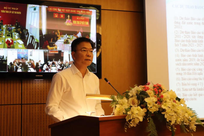 Ủy viên Trung ương Đảng, Bí thư Ban Cán sự Đảng, Bộ trưởng Bộ Tư pháp Lê Thành Long chủ trì và truyền đạt một số nội dung liên quan.