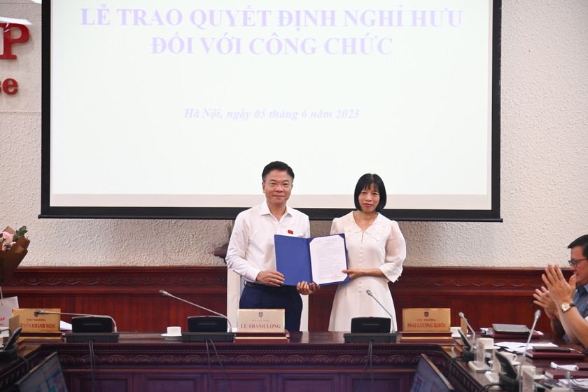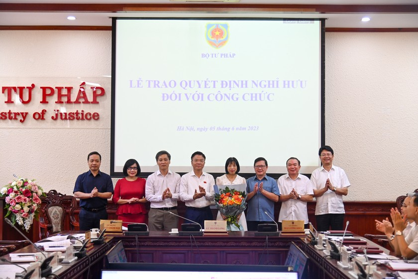 Bộ trưởng Lê Thành Long đã trao Quyết định nghỉ hưu đối với đồng chí Nguyễn Thị Mai, nguyên Phó Cục trưởng phụ trách Cục Bổ trợ tư pháp.