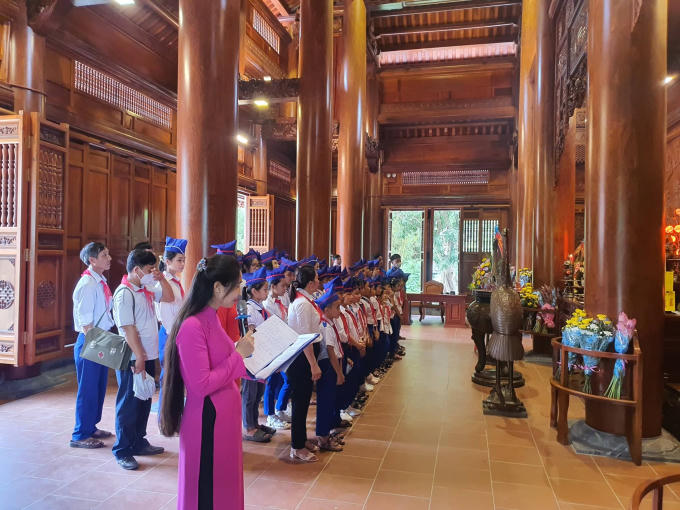 Nhiều bạn nhỏ tìm hiểu lịch sử ngôi nhà thân sinh Chủ tịch Hồ Chí Minh