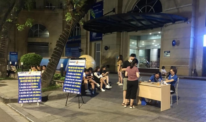 Bảo hiểm Bảo Việt tận dụng thời cơ chào bán bảo hiểm TNDS xe cơ giới ngay trước cửa trụ sở chính của Tập đoàn trên phố Lê Thái Tổ (Hoàn Kiếm, Hà Nội).