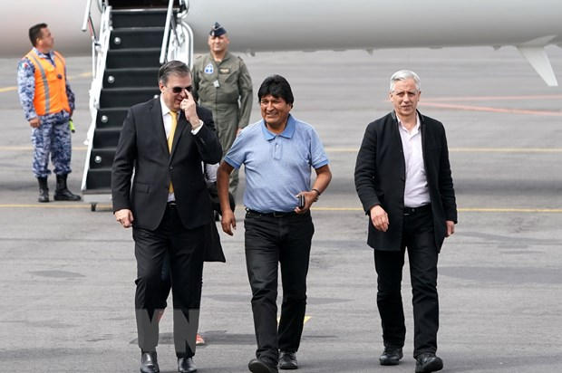 Cựu Tổng thống Evo Morales (giữa) hiện đang tị nạn tại Mexico. (Ảnh: THX/TTXVN)