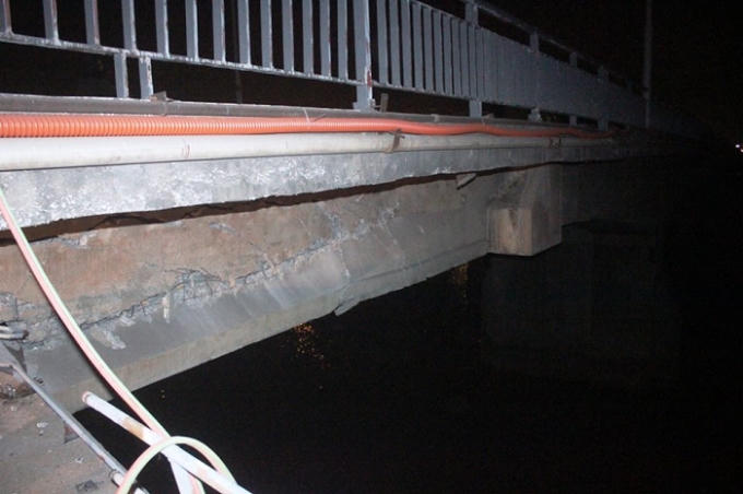 Theo quan sát, tại hiện trường, nóc ca bin thép của tàu Thanh Luân 28 đâm xuyên thủng qua thân dầm cầu. Ca bin tàu bị biến dạng, móp méo. Thanh dầm nhịp giữa cầu bị gãy kéo xô lệch đi. Trên thanh dầm dài cỡ chục mét, nhiều mảng bê tông nứt vỡ toác. Ca bin tàu bị khóa chặt trong thanh dầm, con tàu kẹt cứng dưới gầm.