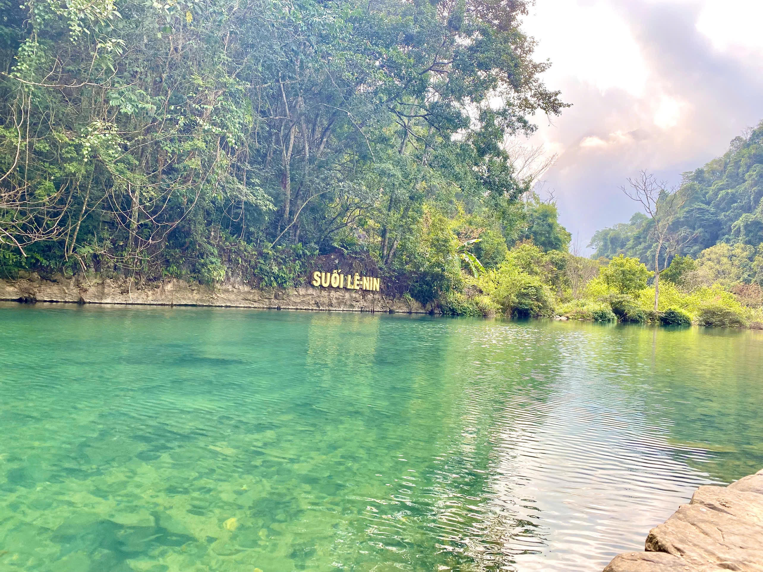 Đến Pác Bó vào mùa xuân là một sự lựa chọn tinh tế của những tâm hồn hoài cổ. Lúc này, dòng suối Lê-nin không cuồn cuộn như mùa mưa mà trở nên tĩnh lặng tuyệt đối. Nước xanh trong đến mức bạn có thể nhìn thấy từng đàn cá bơi lội dưới đáy, thấy cả bóng những nhành cây cổ thụ soi mình xuống mặt hồ gương.