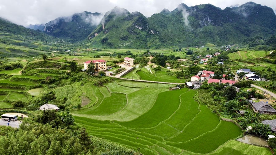 Nhìn từ đỉnh đèo, Công viên Địa chất toàn cầu UNESCO hiện ra như một bộ phim điện ảnh kỳ ảo. Những ngọn núi đá vôi nhấp nhô, san sát nhau như những quân cờ của tạo hóa bày ra giữa thảo nguyên xanh mướt. Đó là kết quả của một quá trình kiến tạo địa chất kéo dài hàng trăm triệu năm, để giờ đây, mỗi hang động, mỗi dòng suối đều mang trong mình một câu chuyện của tiền nhân.
