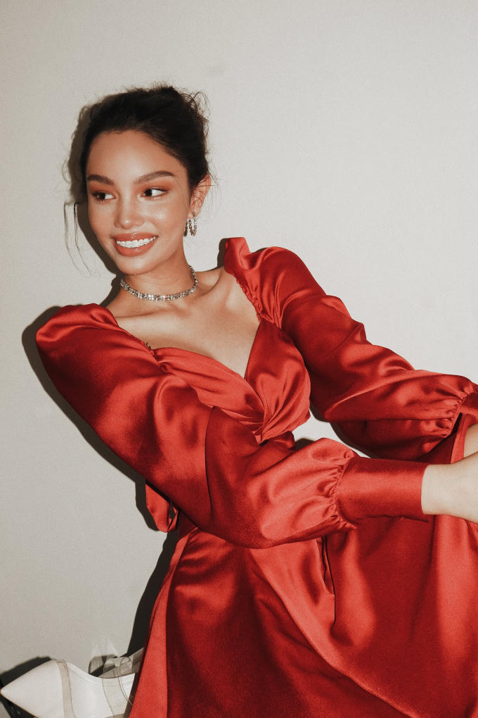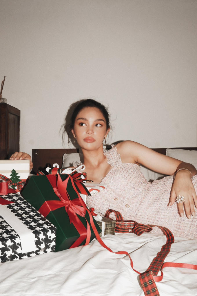 Trong bộ ảnh mới nhất của mình, Alex thể hiện niềm vui bên những món quà Giáng sinh cùng trang phục mang đậm màu sắc và hơi thở mùa Lễ hội.