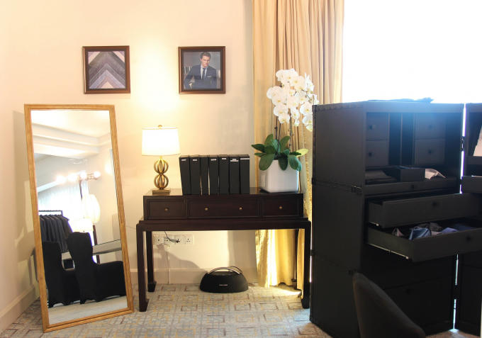Mỗi bộ vest có tới 180 mảnh ghép khác nhau, chọn từ 250 mẫu vải với những chất liệu hàng đầu cùng lớp lót ngực bằng lông ngựa và lông lạc đà, lớp lót trong cổ áo bằng vải lanh và cashmere Ireland cao cấp, được khâu thủ công để mang lại phom dáng chuẩn mực cho cổ áo. Hơn nữa, đi kèm với mỗi bộ vest là những phụ kiện cũng đẳng cấp không kém như chiếc cà vạt gấp 5 nếp từ lụa cao cấp, khăn cài túi áo cùng loại lụa, những chiếc khuy măng sét đặc biệt…
