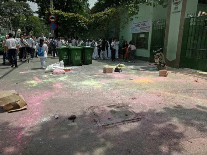 Trước lễ này, học sinh đã mang bột màu vào trường để tung lên sau lễ nhưng bị giám thị nhà trường phát hiện và ngăn chặn. Vì vậy, sau khi kết thúc buổi lễ, các em mang ra về và đứng ngoài trường tung vào trong