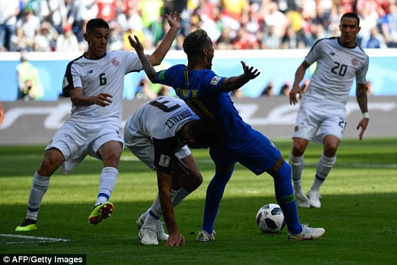 Navas cùng hàng thủ của Costa Rica tổ chức rất tốt và theo kèm người cực chắc chắn. Các hạt nhân chính của Brazil là Neymar và Coutinho đều bị “chăm sóc” kĩ lưỡng. Mỗi khi Neymar có bóng thì các cầu thủ Costa Rica áp sát cực nhanh và không ngại phạm lỗi.