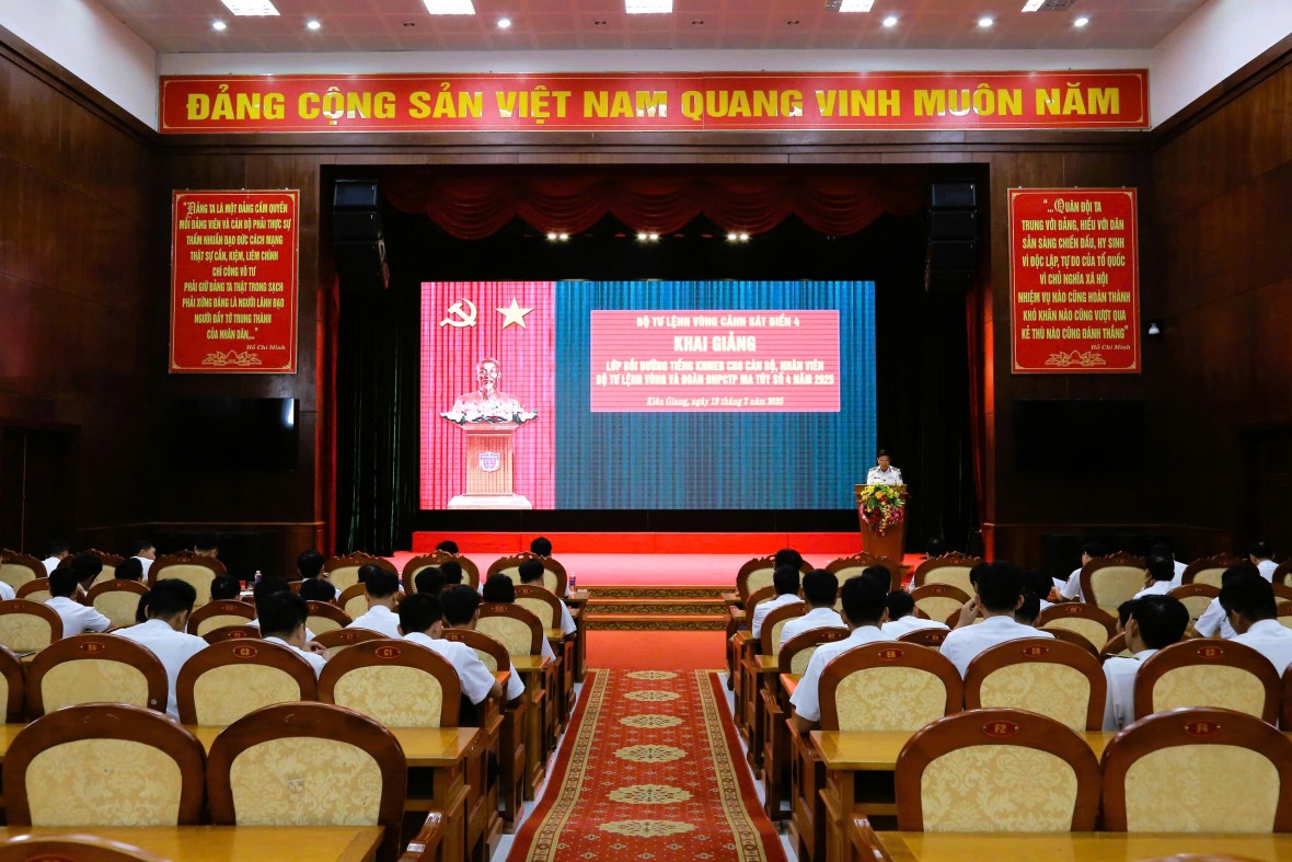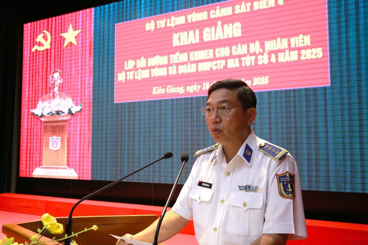 Chiều 19/3, tại thành phố Phú Quốc, tỉnh Kiên Giang, Bộ Tư lệnh Vùng Cảnh sát biển 4 đã khai giảng lớp bồi dưỡng tiếng Khmer năm 2025 cho cán bộ, nhân viên. Đại tá Trần Nguyên Lai - Phó Tư lệnh, Tham mưu trưởng Bộ Tư lệnh Vùng Cảnh sát biển 4 dự và chủ trì khai giảng.