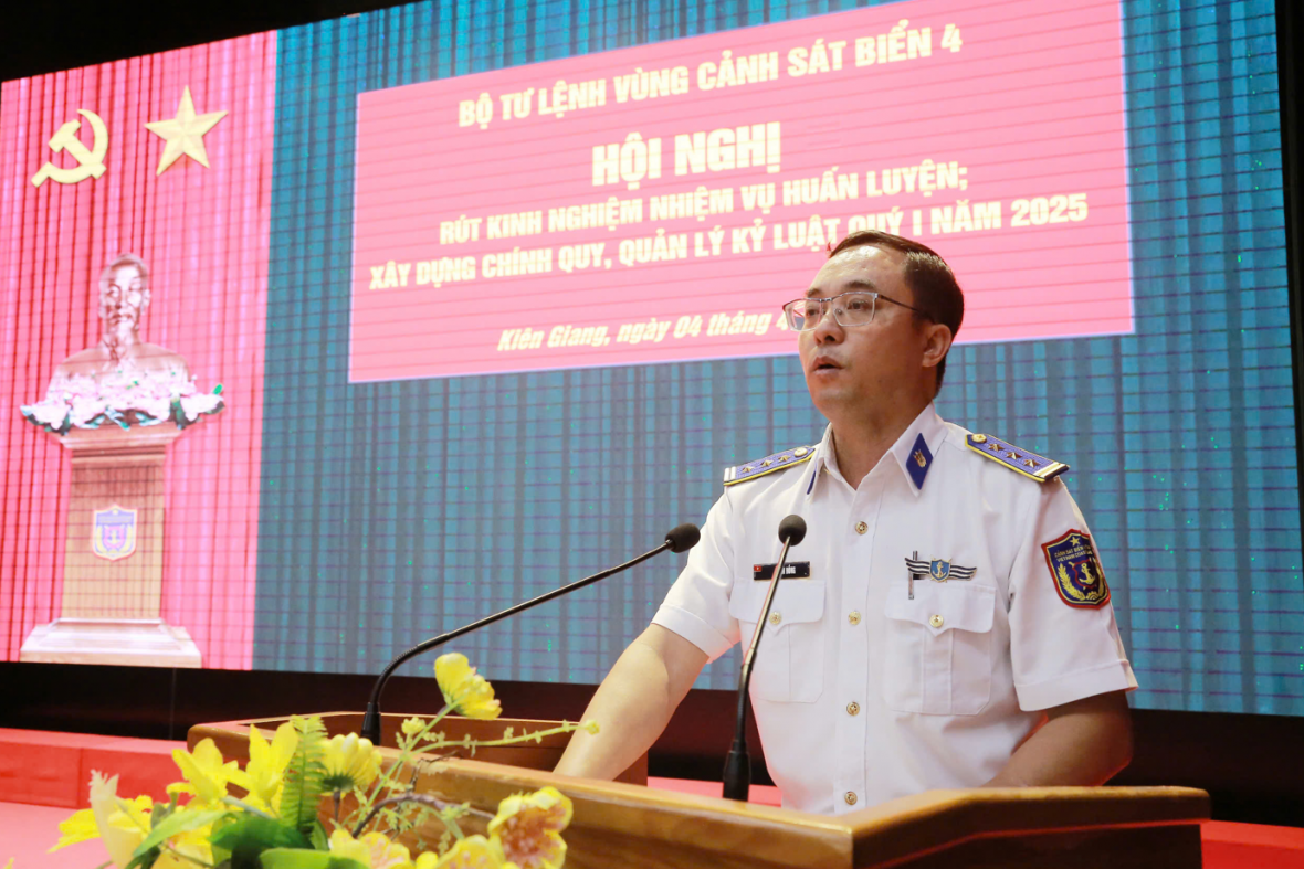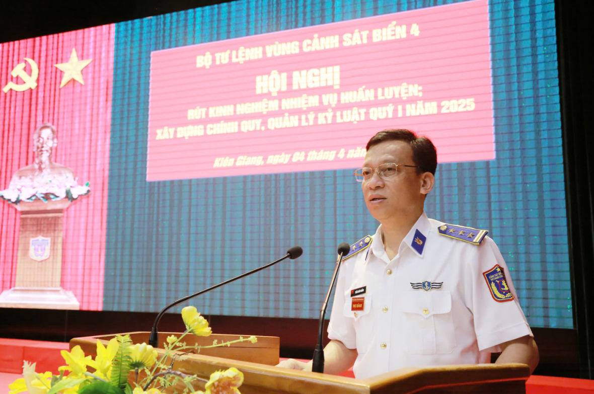 Báo cáo tại hội nghị cho thấy, quý I năm 2025 Đảng ủy, Thủ trưởng Bộ Tư lệnh Vùng Cảnh sát biển 4 đã lãnh đạo, chỉ đạo sâu sát, kịp thời về công tác huấn luyện, xây dựng chính quy, quản lý kỷ luật. Các cơ quan, đơn vị đã chủ động, tích cực nâng cao chất lượng tập huấn, bồi dưỡng cán bộ, đổi mới phương pháp, nội dung huấn luyện phù hợp với đặc điểm tình hình, nhiệm vụ. Đã quán triệt thực hiện nghiêm Nghị quyết, chỉ thị, mệnh lệnh và hướng dẫn của các cấp, làm tốt công tác chuẩn bị, tổ chức lễ ra quân huấn luyện trang trọng, tạo khí thế sôi nổi và đúng quy định; triển khai nhiệm vụ huấn luyện chặt chẽ, có trọng tâm, trọng điểm, bảo đảm nội dung, thời gian cho các đối tượng. Công tác xây dựng chính quy, chấp hành kỷ luật trong Bộ Tư lệnh Vùng Cảnh sát biển 4 được duy trì nghiêm túc nhất là duy trì nghiêm công tác sẵn sàng chiến đấu. Đơn vị bảo đảm an toàn tuyệt đối trong huấn luyện và khi tham gia giao thông.